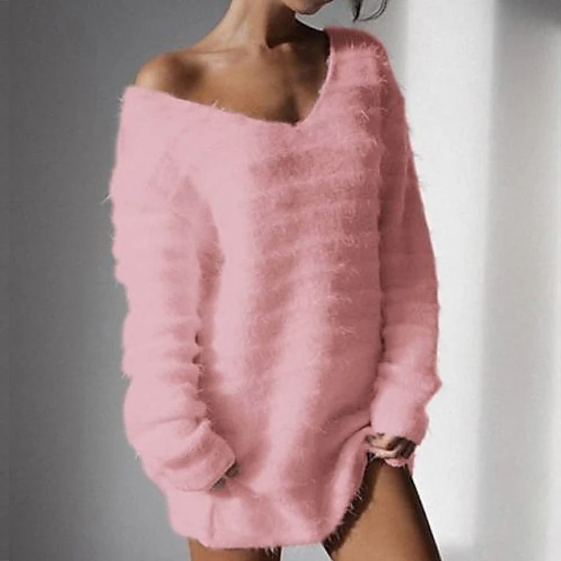 Fashion Warm Elegant O Neck Loose Plush Mini Party Casual Dress