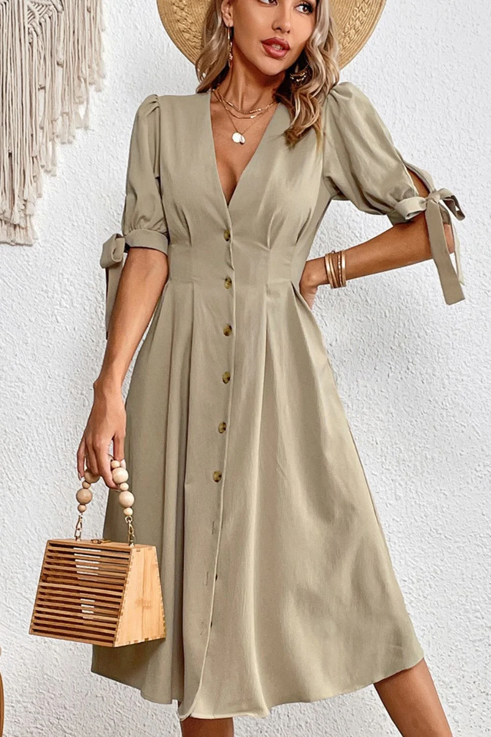 Summer Women's Fashion Casual Elegant Button Short Sleeve Midi Dress